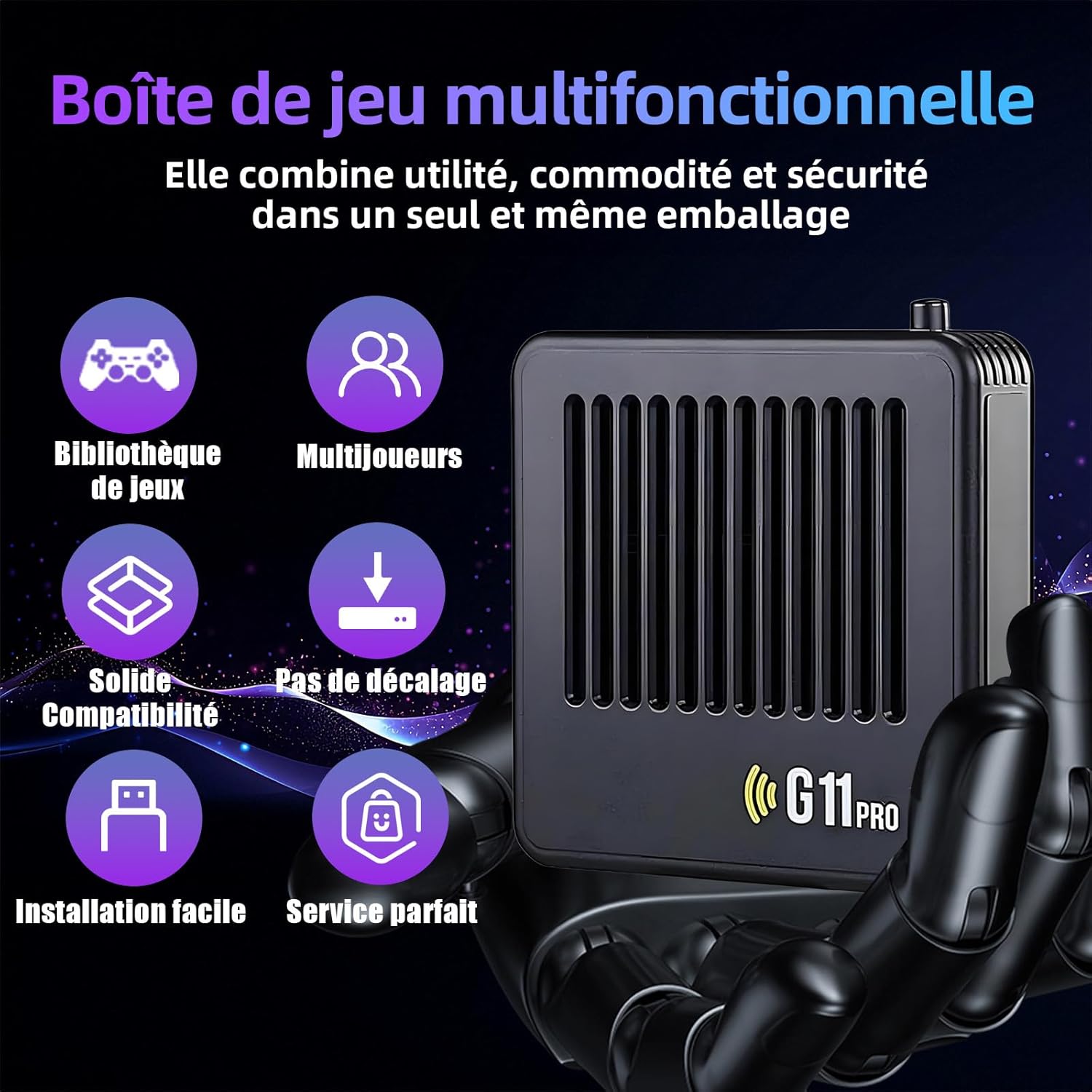 Qui a dit que le rétro devait être moche ? Notre console G11 Pro est un bijou de technologie, avec un look moderne et élégant qui s'intègre parfaitement dans votre salon. Montrez que vous avez du goût, même pour le gaming old school. Vos amis seront jaloux !
